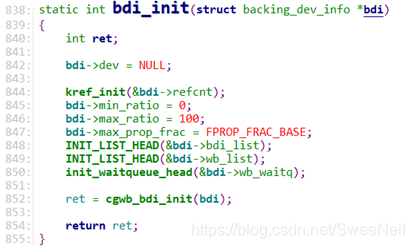 wb_init()函数,定义在mm/backing-dev.c中,其内容如下: