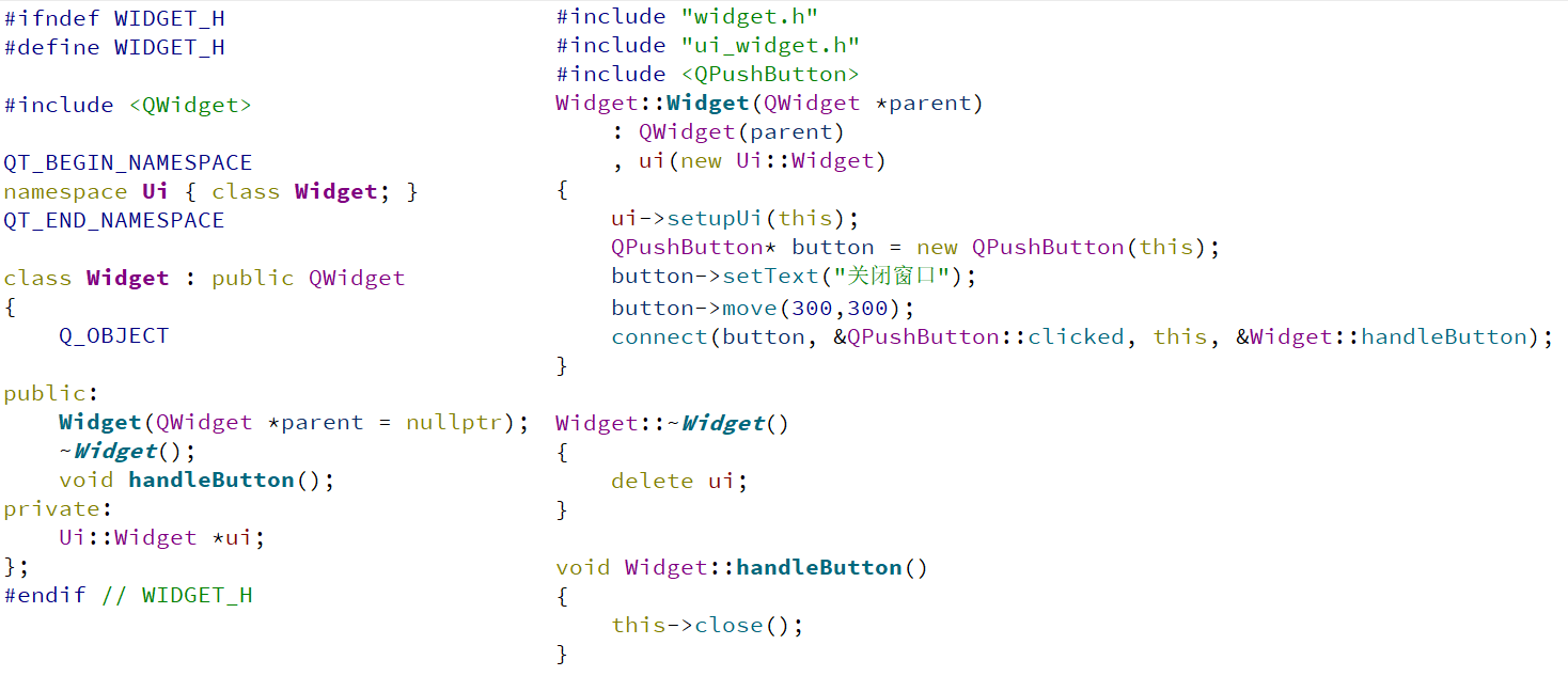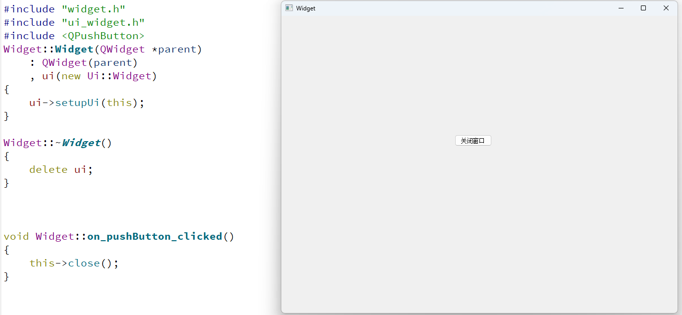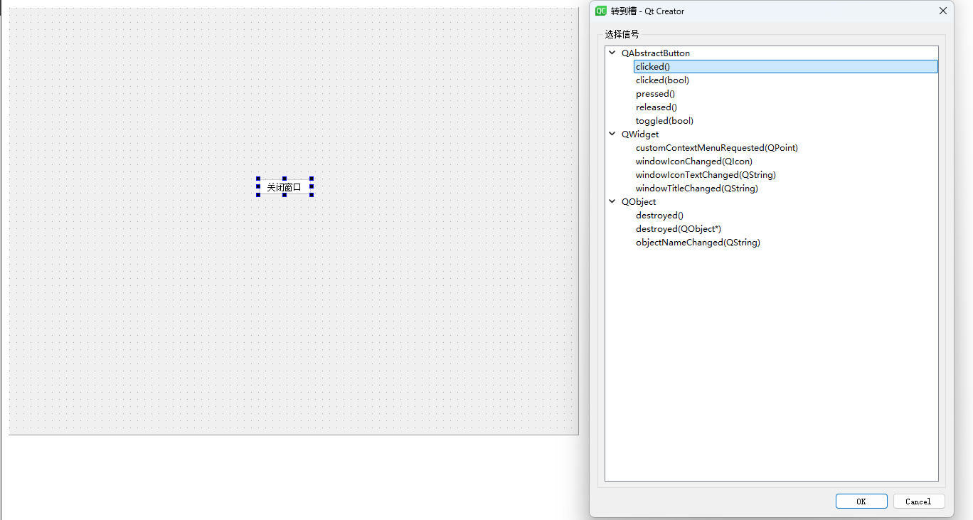 以下是使用代码生成信号槽代码,达到点击按钮关闭窗口的效果。