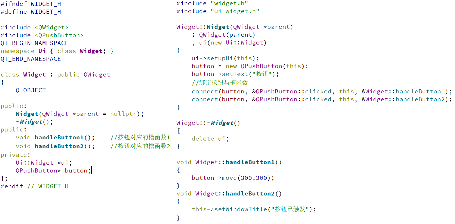 - 早期 Qt 版本要求槽函数必须写到 "public slots" 下,但是在高级版本的 Qt 允许写到类的 "public" 作用域或者全局下;