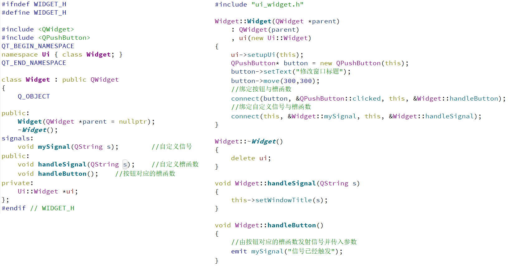 在上例中使用 Qt 提供的信号:clicked(),即点击信号。实际 Qt 也支持自定义信号与槽。