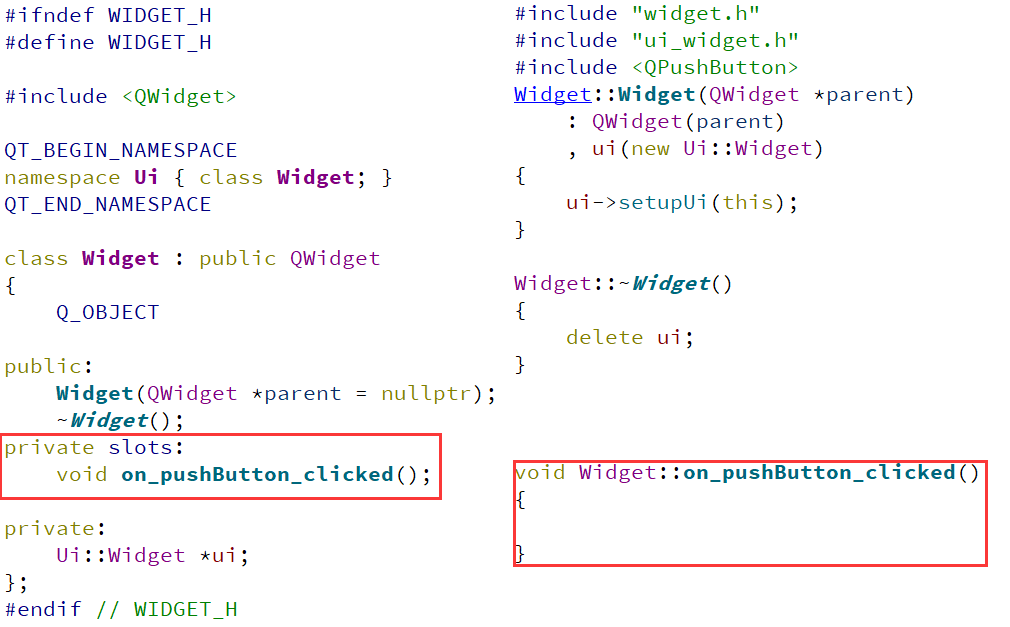 此时 Qt 会自动生成对应的槽函数并绑定链接,用户只需关心槽函数内部的实现即可。