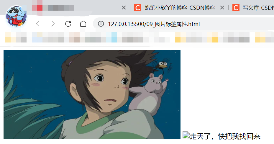 <img src="qianxun.jpg" alt="走丢了,快把我找回来" title="千与千寻——宫崎骏" width="400px" height="200px">