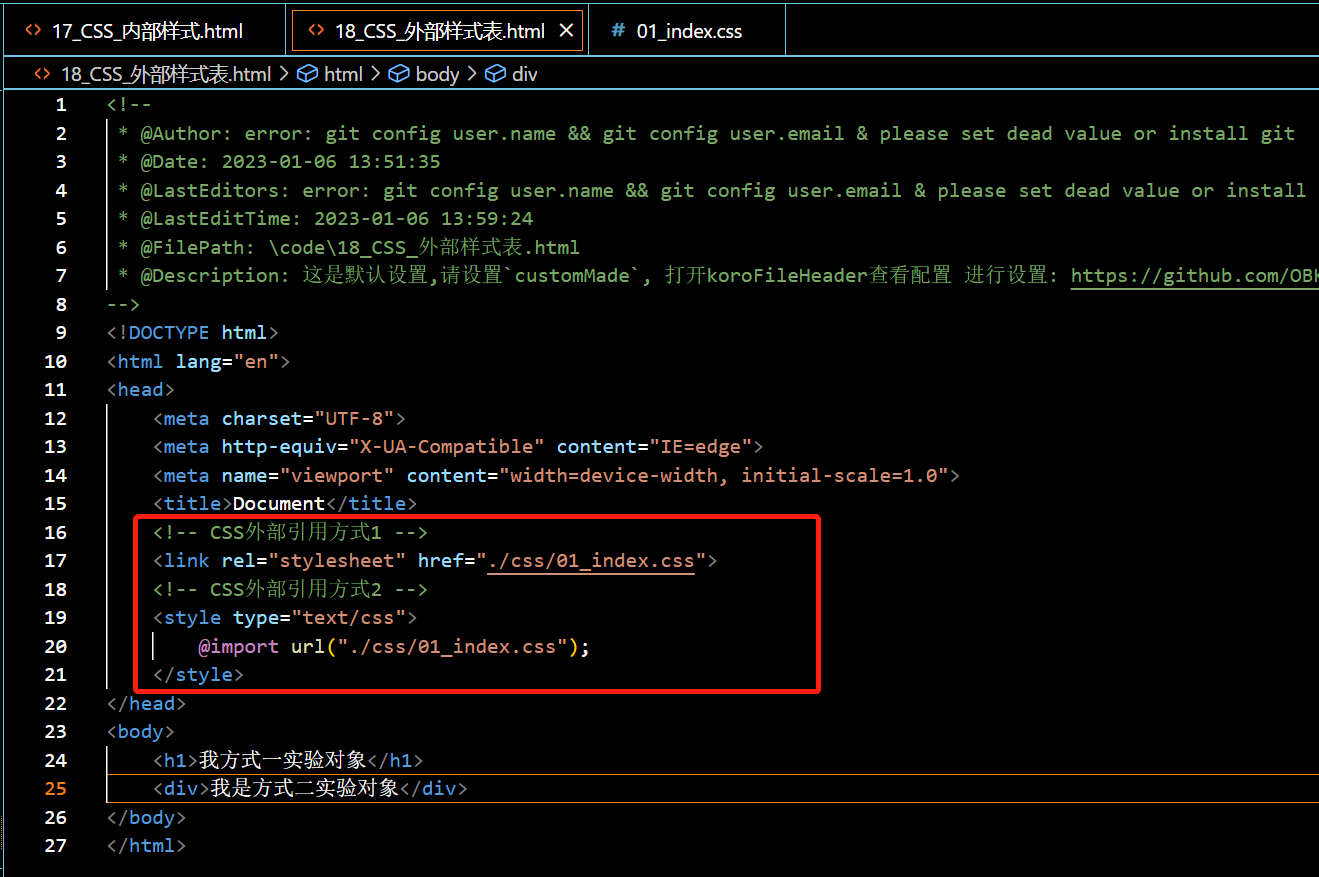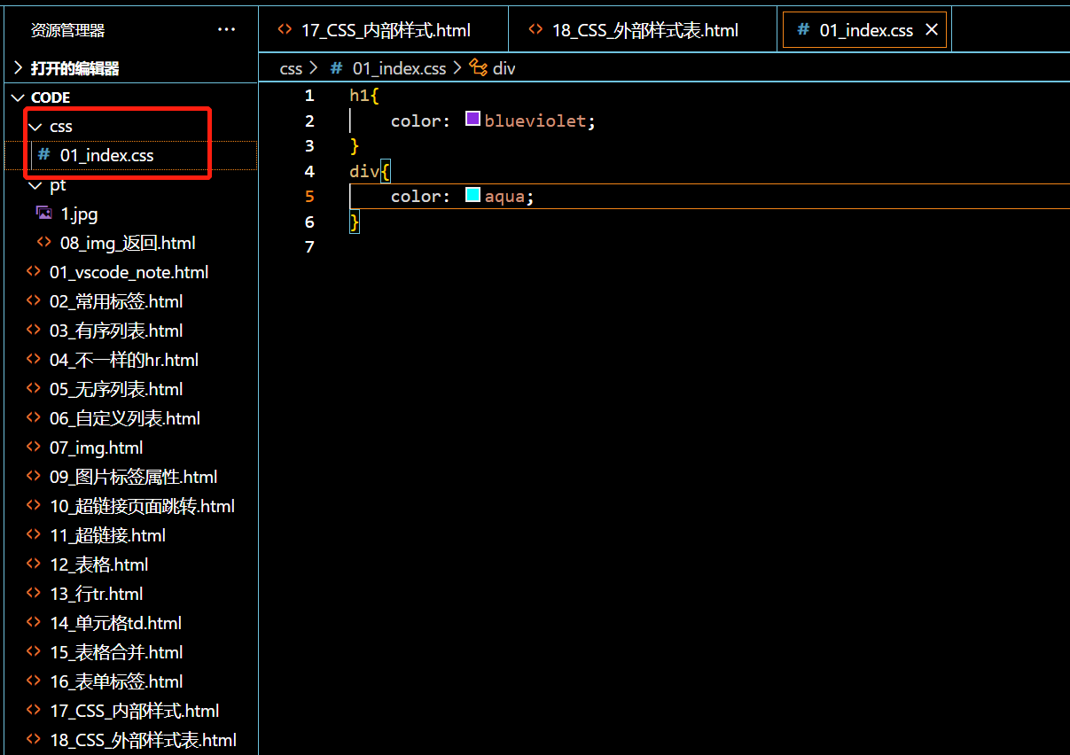 1.CSS外部样式的创立
