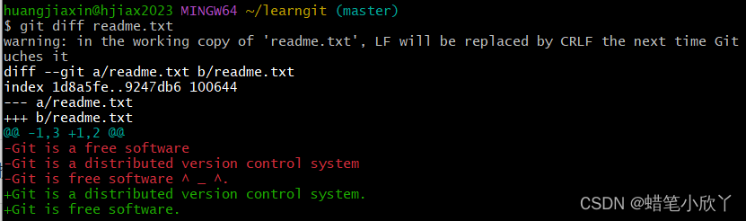 huangjiaxin@hjiax2023 MINGW64 ~/learngit (master)