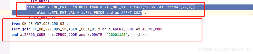 需求:就是我如果x.fnl_price 为空的话,那么我就将a.RTL_MKT_VAL * 0.35 ,如果不为空,那么就进行相乘!