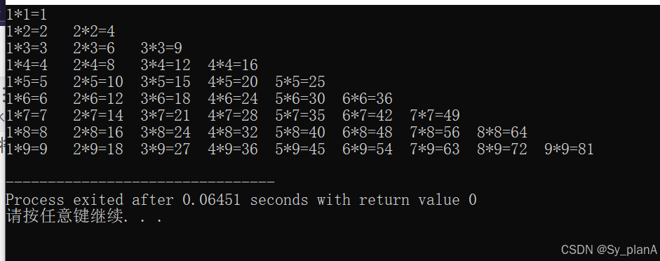 for (i = 1; i <= 9; i++)这个循环控制乘法口诀表的行数。从1循环到9,因为乘法口诀表通常是1到9的。 -