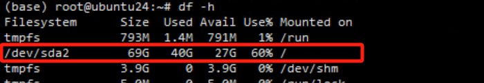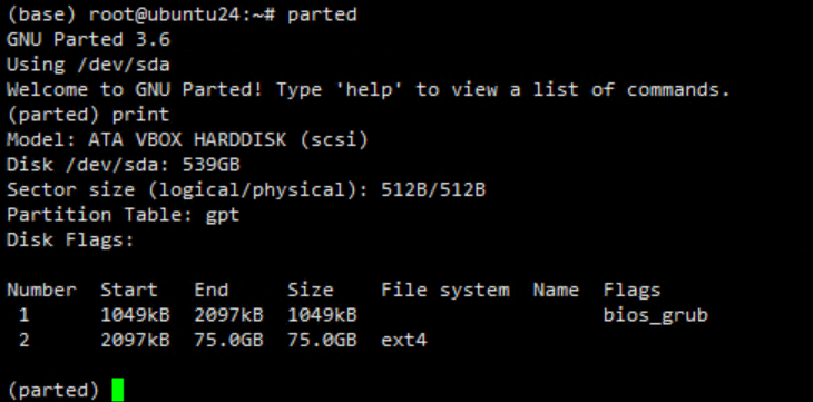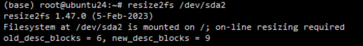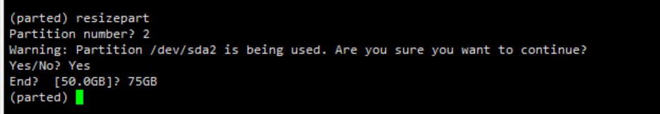 之后如果你的系统有图形界面,那可以使用gparted进行调整,这里不再赘述。或者这里可以直接用命令进行操作