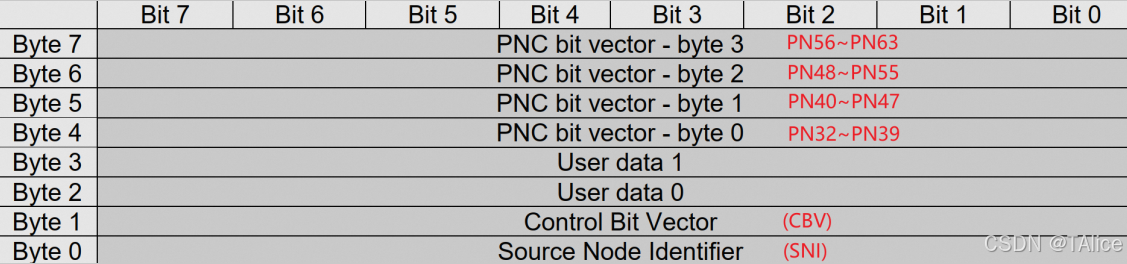 - NM PDU中, Byte0-Source Node Identifier(节点源地址)和Byte1-Control Bit Vector(控制字节)。这两个字节在NM PDU中的位置是可以配置的(可以交换位置,也可以都不存在)