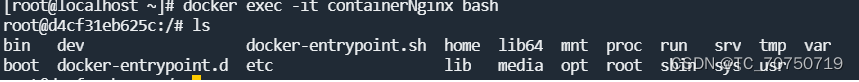 7.执行 ls 命令,可以看到在容器内部是一个类似于Linux文件系统的目录结构