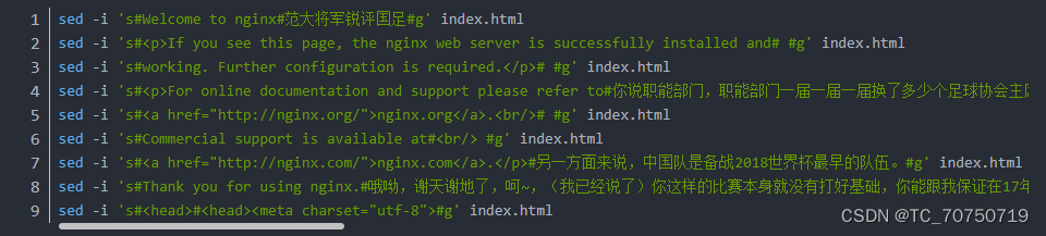 9.可以看到确实是在这个位置,但是由于这个镜像系统是个阉割的 linux 环境,没有 vi 编辑命令,所以我们无法使用 vi 命令对其修改。但是我们可以使用 sed 命令,对 index.html 文档内容做个简单替换