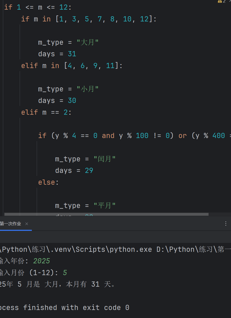 # # print(f"{y}年 {m} 月是 {m_type},本月有 {days} 天。")