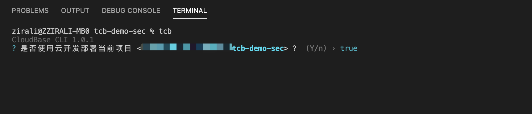 之后,直接执行tcb即可自动检测并部署,选择Y,继续部署