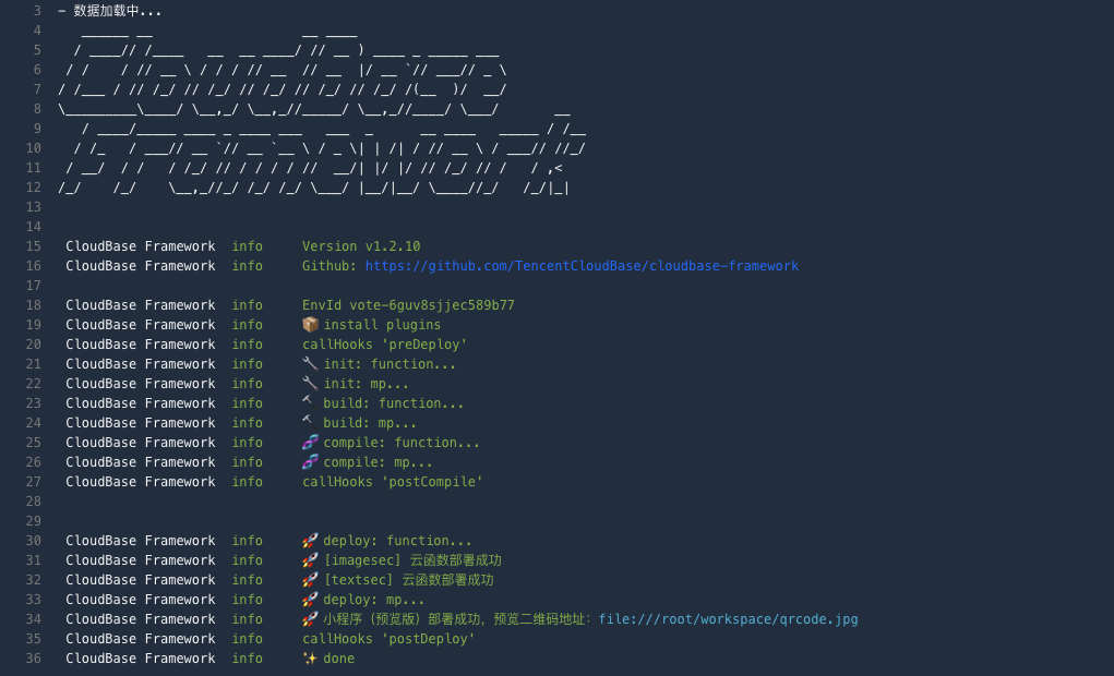 之后,cloudbase-framework就根据配置文件的要求进行部署,并将小程序的预览二维码保存到规定的地方。