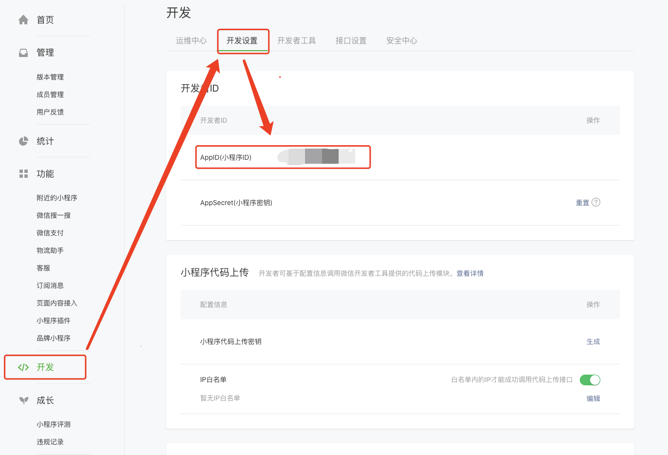 小程序appid是一个微信小程序的关键标识信息,可以在开发者后台的开发栏目里看到,如下图所示: