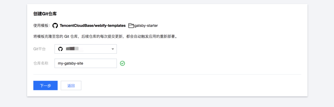 前往 Webify 快速开始页面,选择自己的代码仓库,或者从现有的模板中,创建你的第一个 Web 应用。