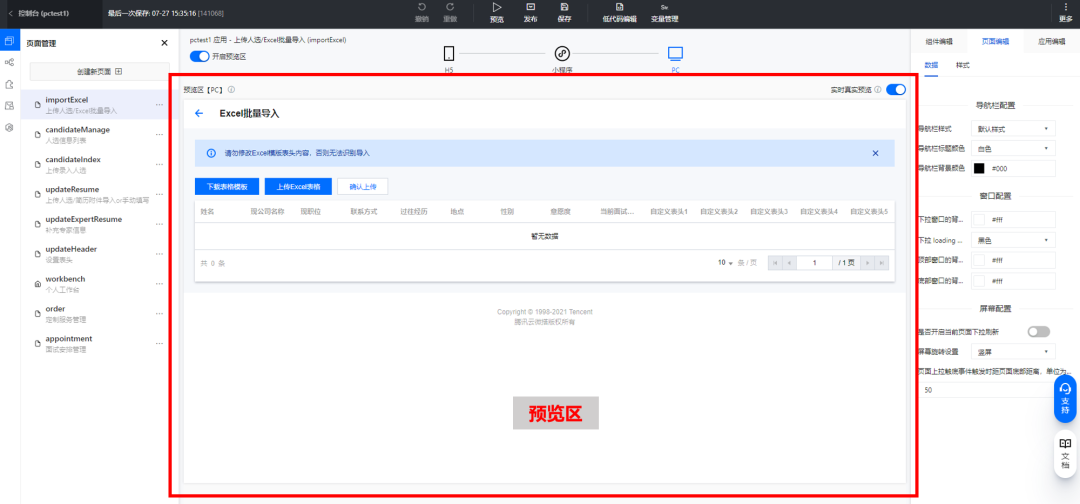 腾讯云微搭低代码平台现支持PC Web应用构建,提供PC端模板如人员招聘管理系统,适用于OA办公、CRM、HR系统等快速搭建。编辑器支持实时预览,具有响应式组件变化,方便用户构建和管理PC端应用。