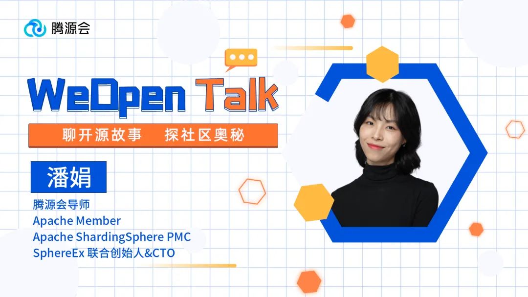 人物介绍:潘娟,腾源会导师,SphereEx 联合创始人&CTO;Apache Member,Apache ShardingSphere PMC,Apache brpc(Incubating) & Apache AGE(Incubating) mentor,AWS Data Hero,中国木兰开源社区导师。
