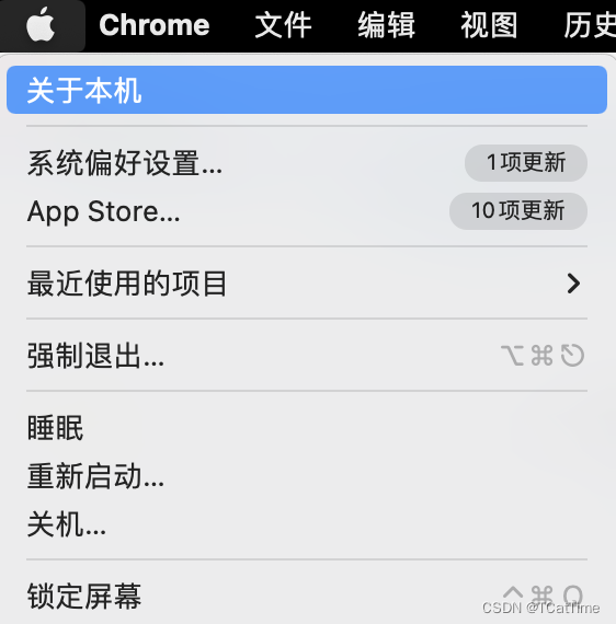 不清楚自己Mac应该选择哪个版本的时候,可以点击屏幕左上角的苹果logo -> 关于本机: