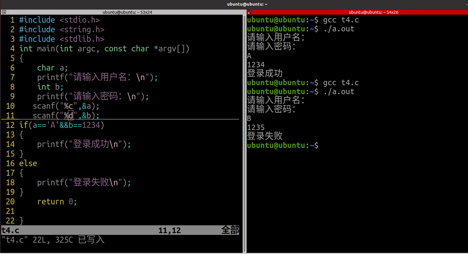 二、输入用户名和密码,如果用户名和密码都正确,则登陆成功,否则失效,默认用户名为A,密码:1234