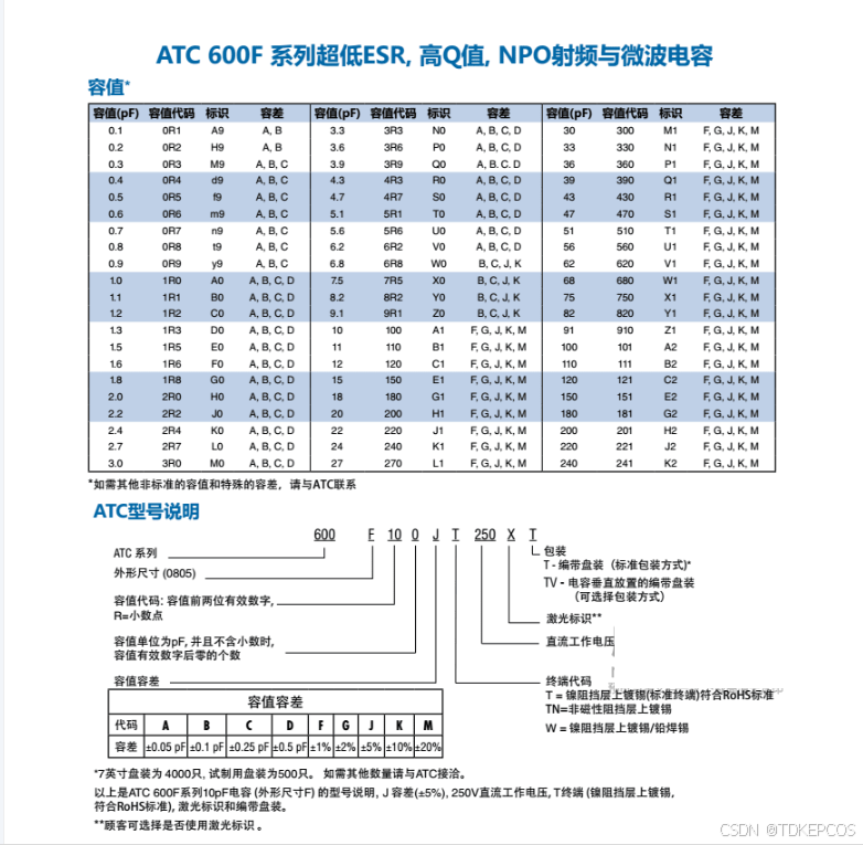 ATC600F系列*低串联等效电阻,高Q,NPO介质,射频与微波电容