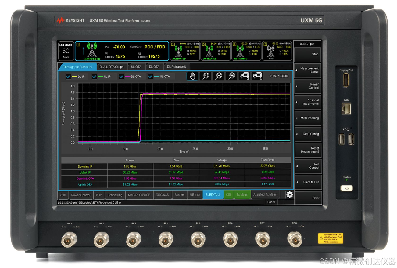 E7515B UXM 5G 无线测试解决方案采用高度集成的设计,外形十分紧凑,只占据很小的实验室空间。 这个解决方案在单个仪器内支持更宽广的测试范围,并具有以下功能: