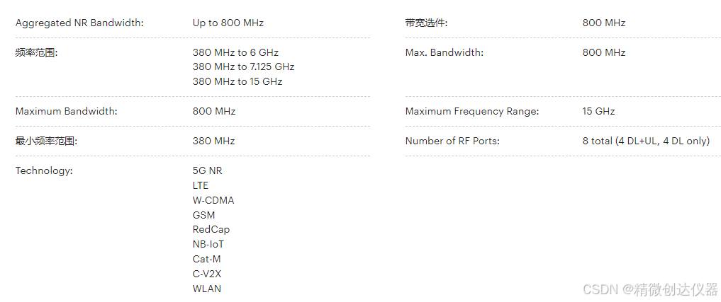 5G NR 8CC DL、4 CC UL 2x2;以及 LTE 2CC