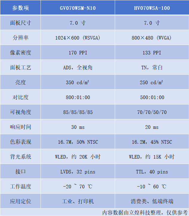 若重点在工业控制与打印机终端,GV070WSM-N10是性价比高的方案。