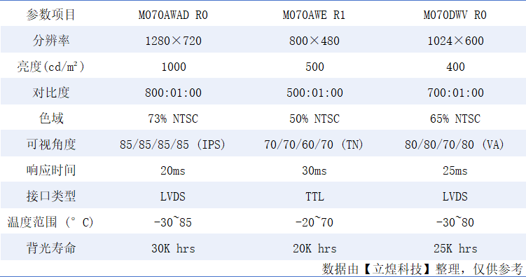 教育/商用终端:若在室内使用,可选择功耗更低的500nits型号(如070AWER1)以平衡成本。