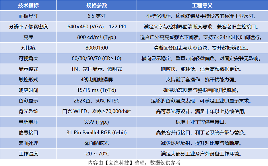 背光寿命超过7万小时,远高于普通商业模组的3–4万小时标准。对于需要全天候运行的户外显示、生产线监控设备而言,这是可靠性的重要保障。