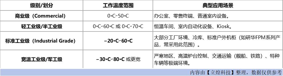 这是区分工业级和商业级产品最直接的指标。显示屏的工作温度范围越宽,其“工业级”等级就越高。