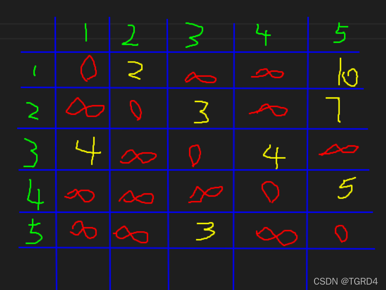 /*此处可省略if(i==j) e[i][j]=0;(自己到自己的城市路径为0)*/