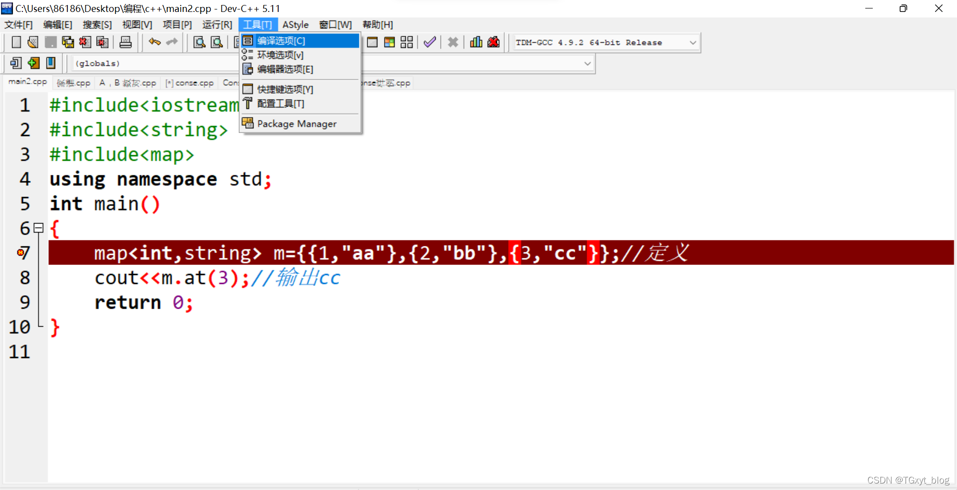 map<int,string> m={{1,"aa"},{2,"bb"},{3,"cc"}};//定义