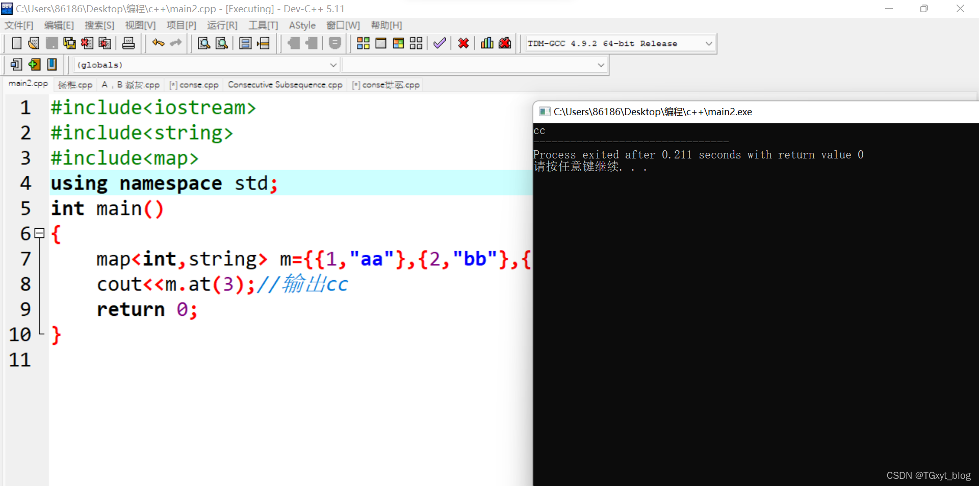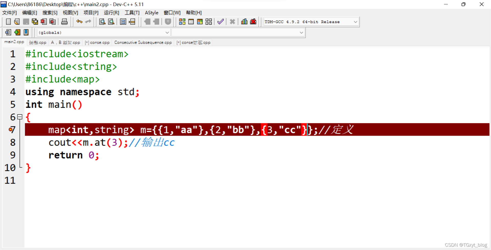 map是一种键值对容器,里面的数据都是成对出现的。(时间复杂度O(logn)