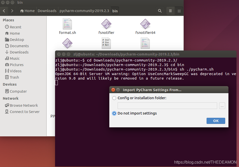 ~$ cd Downloads/pycharm-community-2019.2.3/bin
