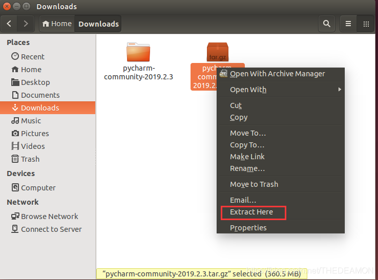 2.下载完成后把安装包放到Linux的downloads文件夹下。然后解压extract here。