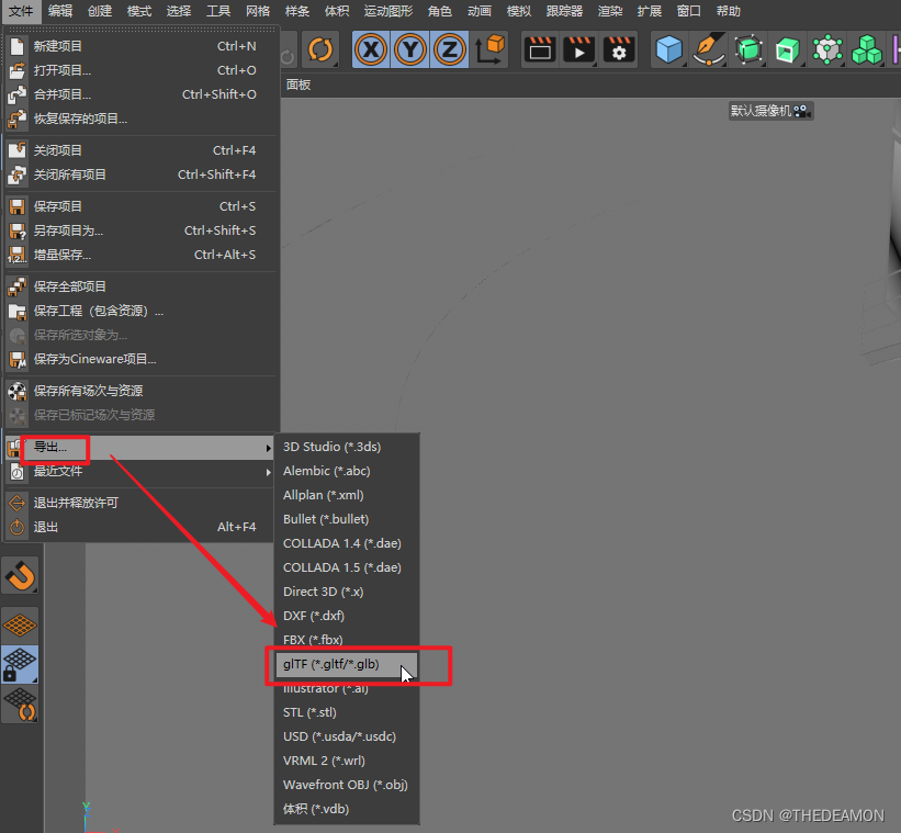 如果你有fbx格式或者obj格式的模型,将数据直接拖到C4D软件中打开,然后选择导出,选择导出格式为gltf或glb,设置导出路径即可。
