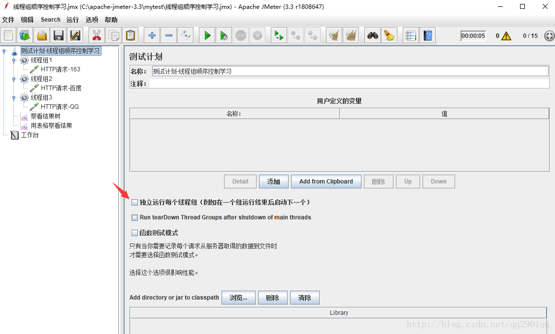 勾选后,一个线程组执行完后才执行下一个线程组,按添加顺序执行
