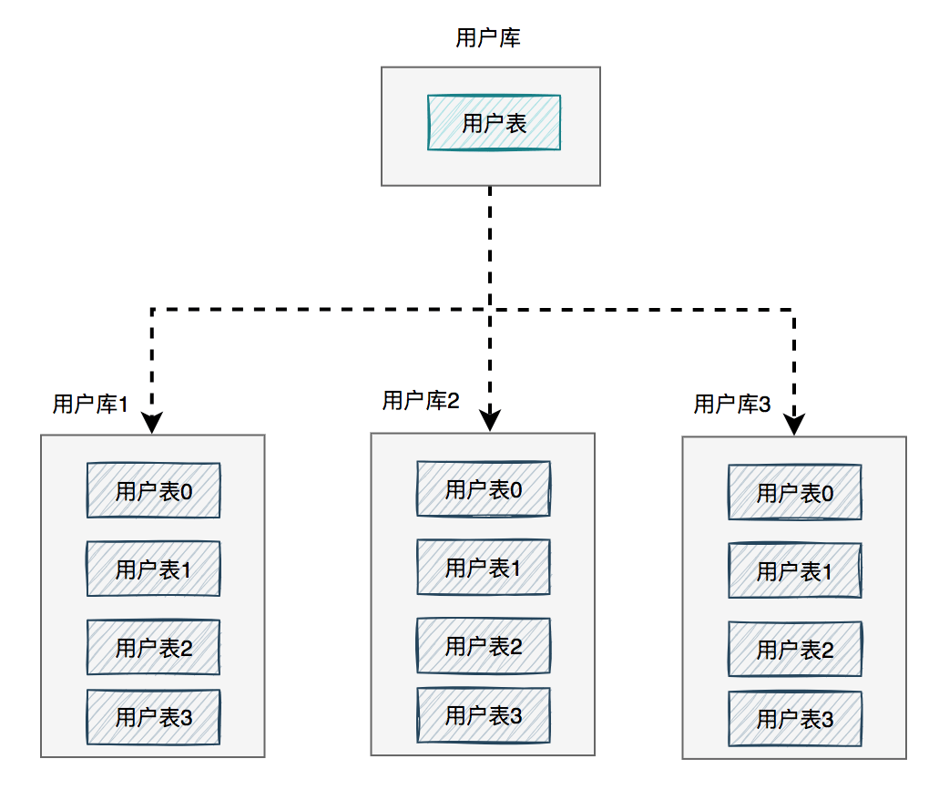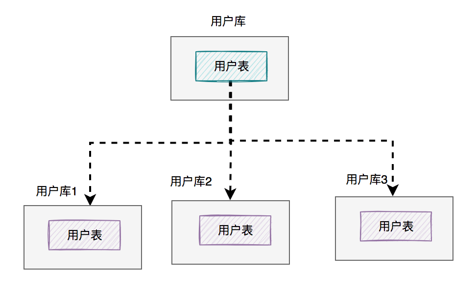 图中将用户库拆分成了三个库,每个库都包含了四张用户表。