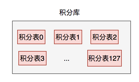当时使用一个积分数据库就够了,但是分了128张表。然后根据用户id,进行hash除以128取模。