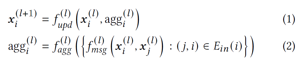 | f m s g ( l ) f_{msg}^{(l)} fmsg(l) | 信息函数 | 计算要从相邻节点传播到目标节点的消息 |