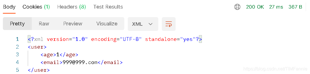 该博客介绍了如何在SpringBoot项目中集成JAXB库,通过@XmlRootElement注解将Java对象转换为XML,并进行HTTP响应。示例展示了创建一个User类,设置相关属性,然后在控制器中返回XML格式的User对象。