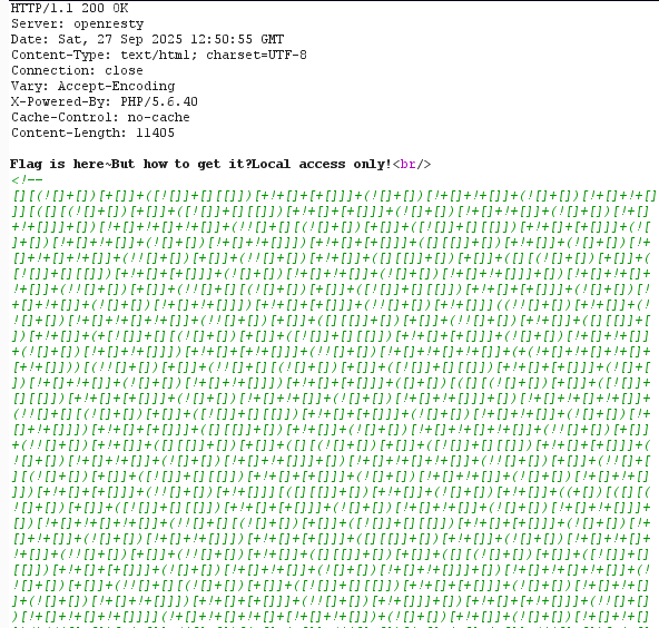 接着网页代码审计,发现有jsfuck加密内容(其实就是编码,不需要密码就可以还原)