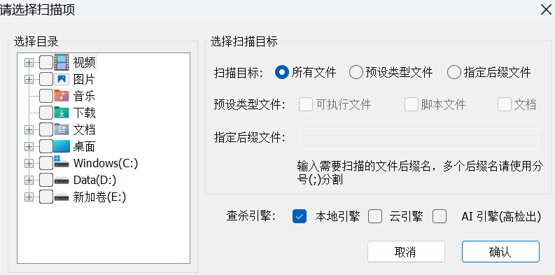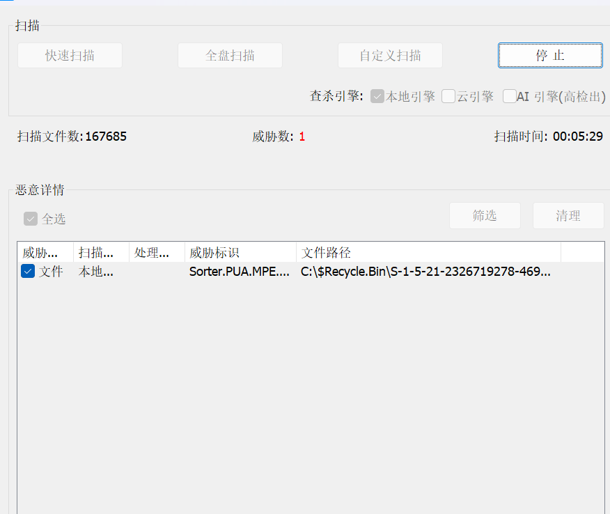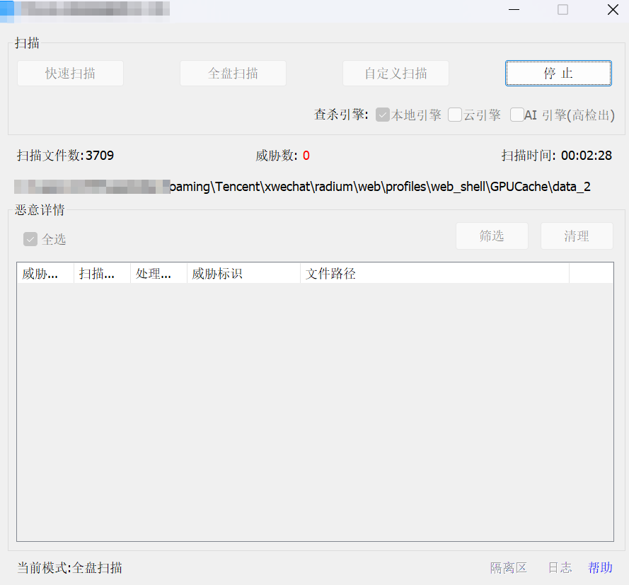 可以选择本地引擎(基于本机病毒特征库进行特征码匹配)