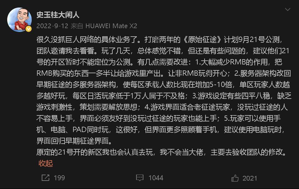 所以到了2022年复出,去抓《原始征途》的研发时,史玉柱依然能一眼看出产品在研发上缺了什么。