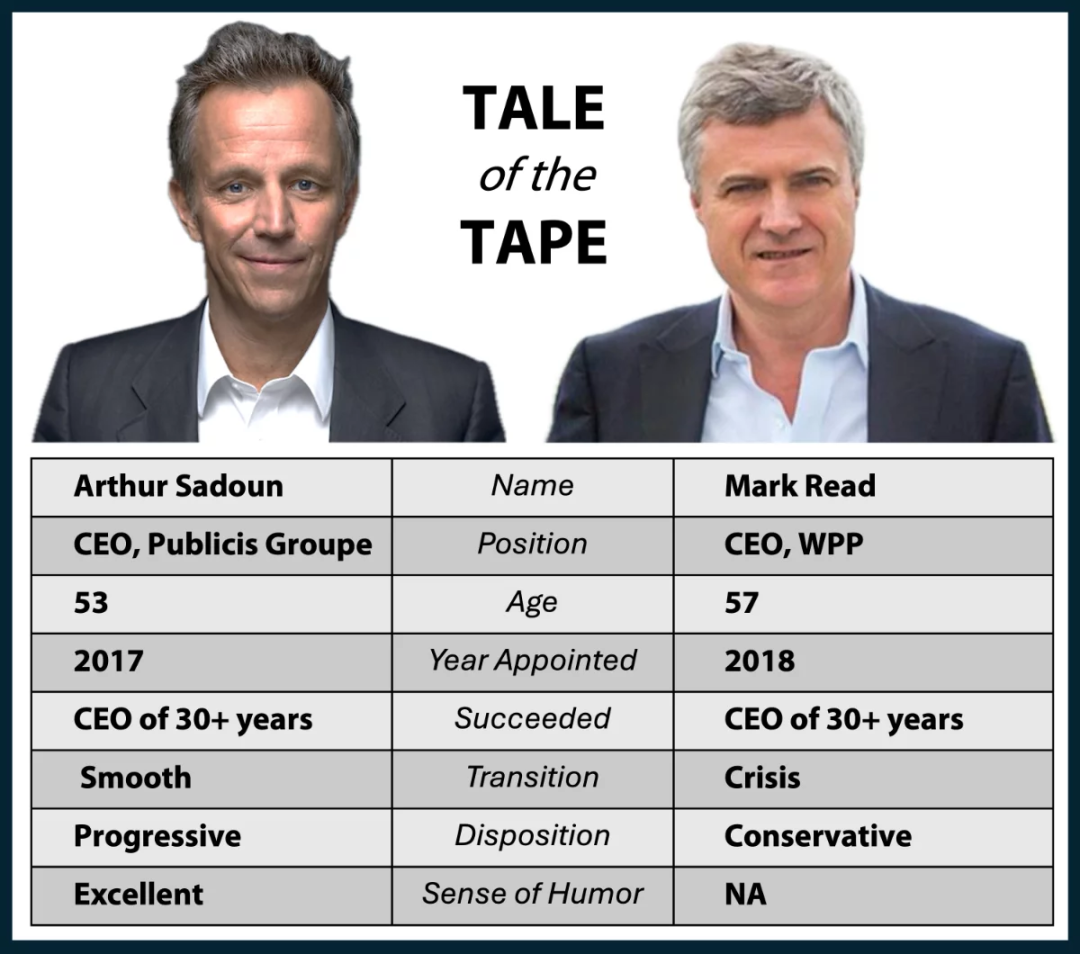 说来也是很有意思。Sadoun于 2017 年加入阳狮集团,Read在2018年入职WPP,他们都是接替了在两家公司任职超过 30 年的前任,都是在低谷中肩负转型重任的CEO。