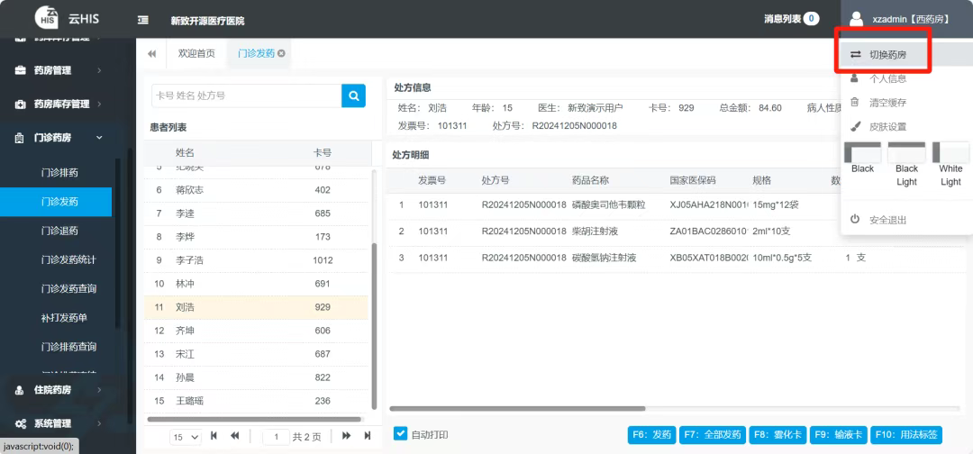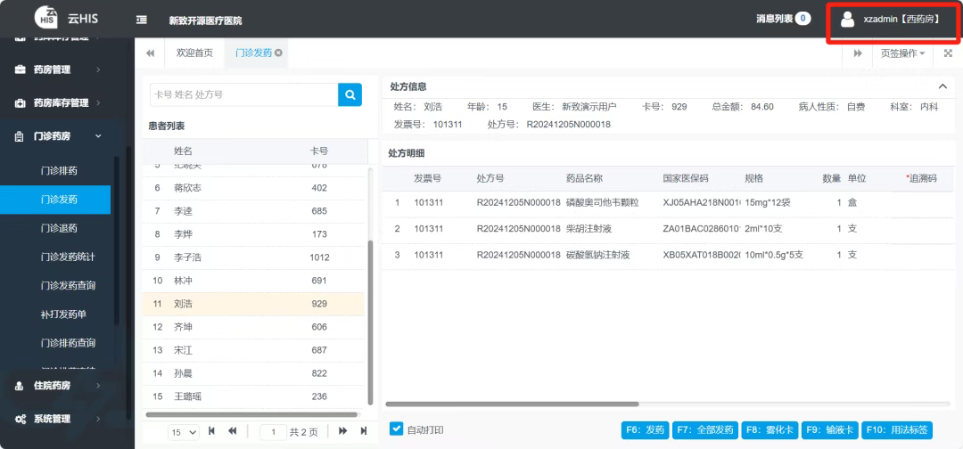 本篇产品操作教程介绍如何使用【OpenHIS医院系统】之【药房药库系统】进行【门诊发药】。