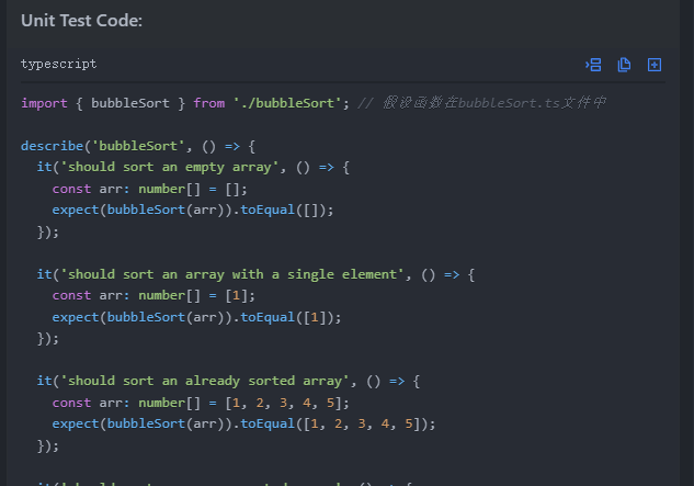单元测试生成:自动生成测试用例,确保代码的可靠性和稳定性。