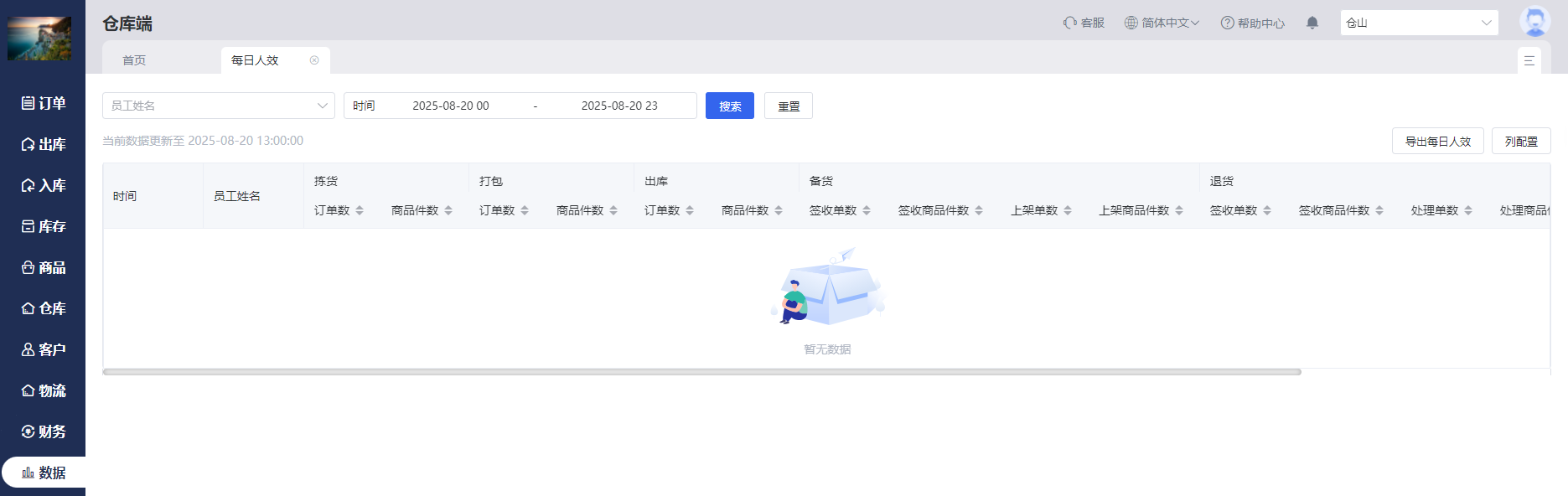 且TOPWMS支持对仓库出入库、每日人效等数据进行统计,结合日常的sop考核培训,强化员工对SOP的认知。