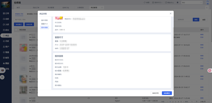 海外仓会接收来自多位客户的多种不同类型的商品,有可能会有禁入日本的违规商品或敏感商品、未清关商品等,在商品入库前,TOPWMS支持商品审核,可查看商品基础信息、报关单等,避免违规、体积重量、未报关等类型商品入库。