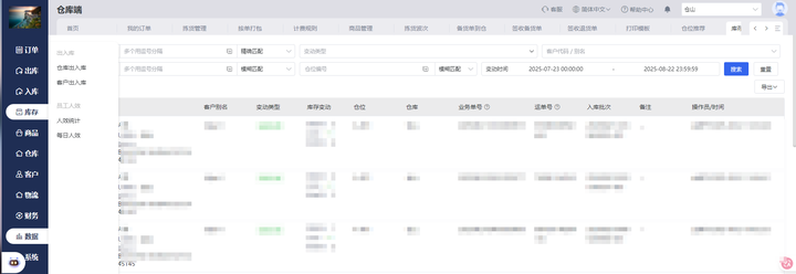 TOPWMS海外仓管理系统支持统计仓库出入库、不同客户出入库、人效统计、每日人效,有效复盘每个仓库的作业效率,调整仓库运营策略。